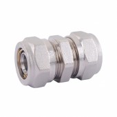 Двухсторонний прямой латунный никелированный фитинг для соединения металлополимерной трубы и компонента системы с резьбовым подключением. Резьба фитинга - внешняя трубная
